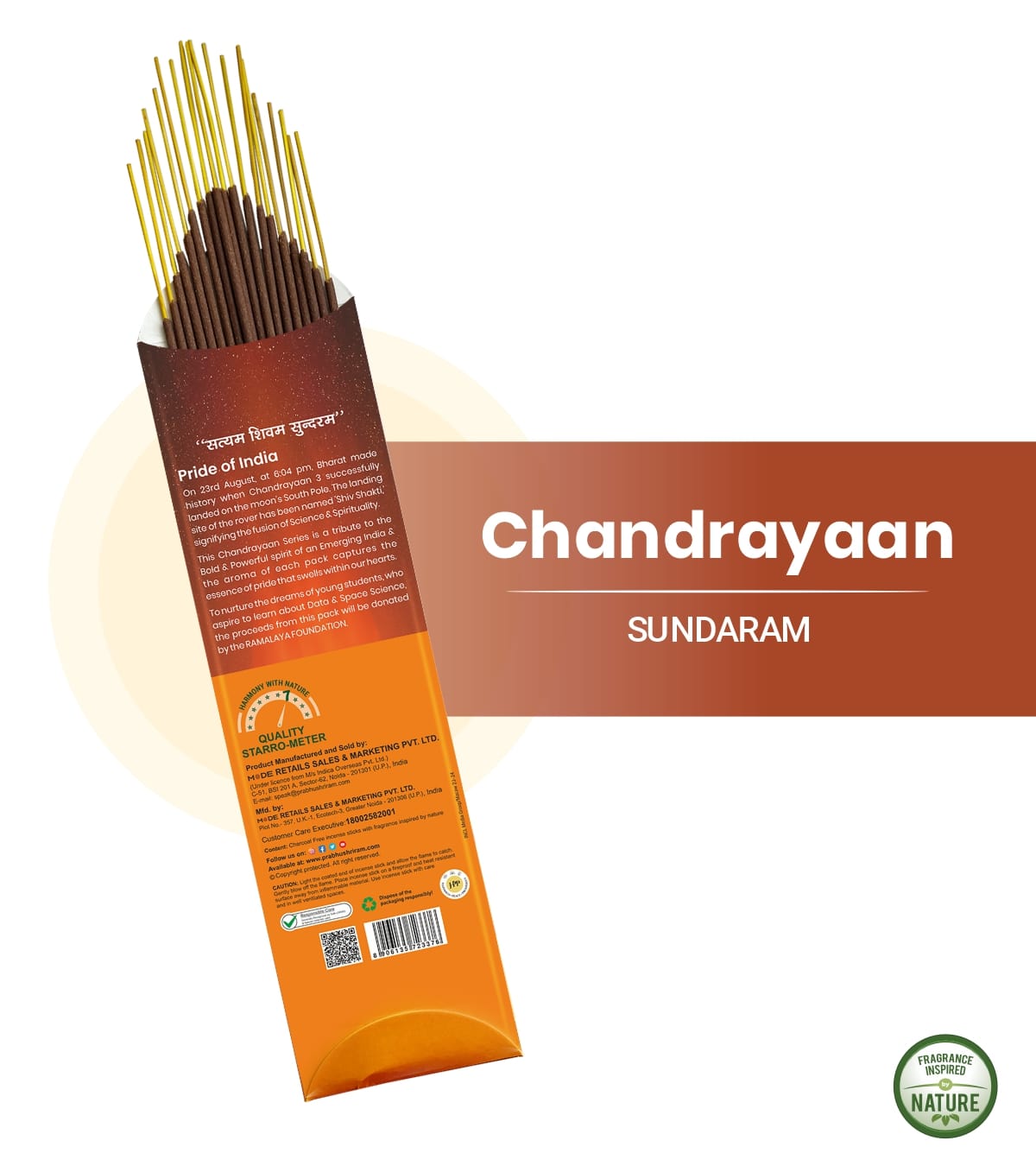The success of Chandrayaan-3 was more than a scientific accomplishment; it was a testament to India's commitment to pushing the boundaries of human knowledge and exploration. Prabhu Shriram- Incense with a Story pays tribute to the great minds at ISRO & celebrates this memorable event of India's space achievement with "The Chandrayaan 3 Series" having "Satyam, Shivam & Sundaram" incense stick packs. What makes this initiative even more meaningful is the brand?s commitment to nurturing the dreams of aspiring space researchers. With every purchase of the Chandrayaan 3 Series pack, a portion of the proceeds will be donated to support students who aspire to study space & data research by the Ramalaya Foundation. Be a part of an exclusive collection that pays homage to India's glorious victory and contributes to shaping the future of young students. About the Fragrance: