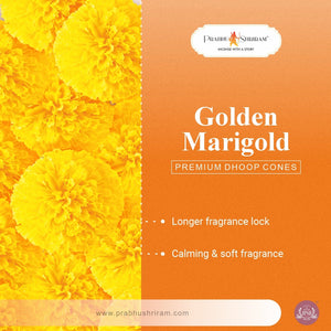 - The Perfect Gift: Presented in elegant packaging, Prabhu Shriram Golden Marigold Incense Cones make an ideal gift for any occasion. Share the gift of cultural exploration with loved ones.