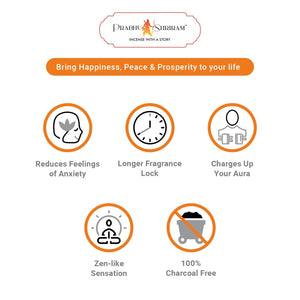 - Unmatched Fragrance: Prabhu Shriram's unique blend utilizes 100% herbal ingredients, including real marigold flowers. This meticulous selection results in a lively and radiant aroma that fills your space with a trail of long-lasting freshness. With a burning time of 30 - 35 minutes.