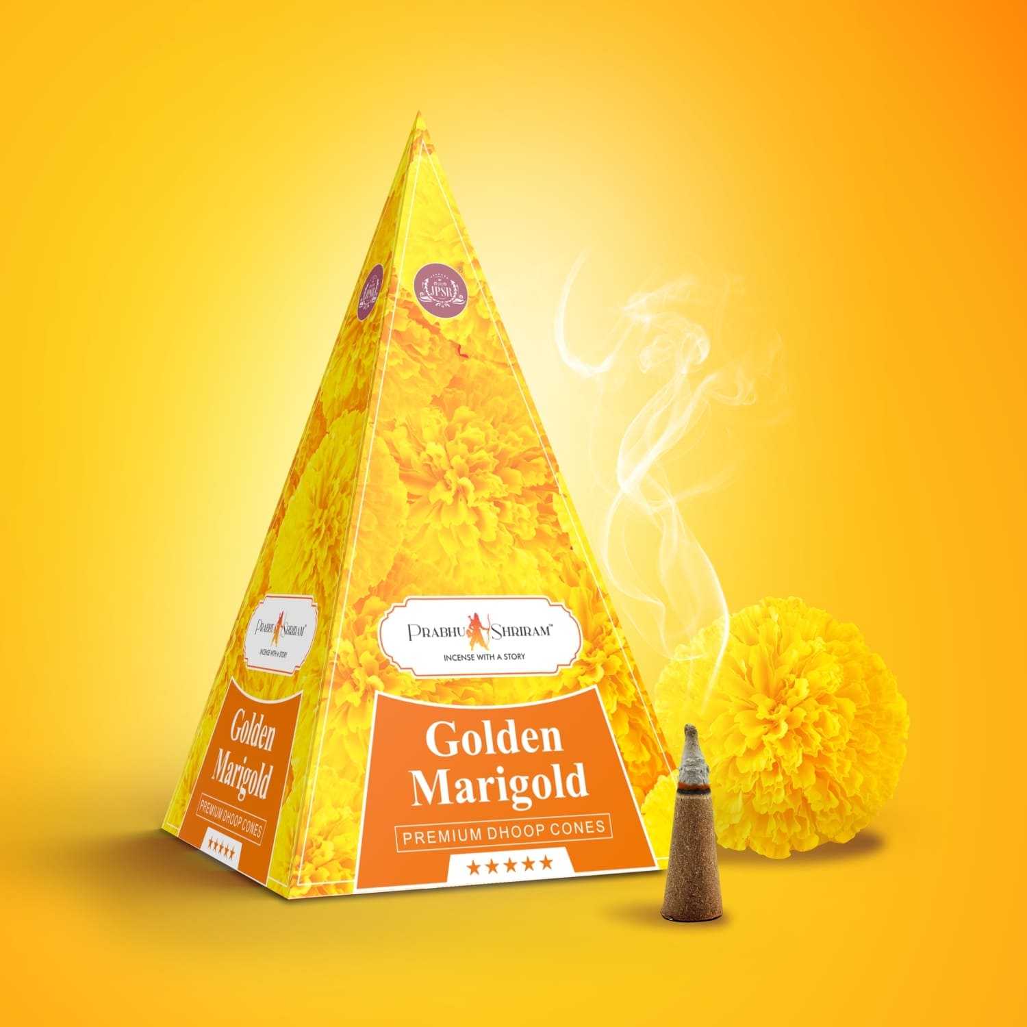 JPSR Prabhu Shriram Golden Marigold Pyramid Luxury Incense Cones