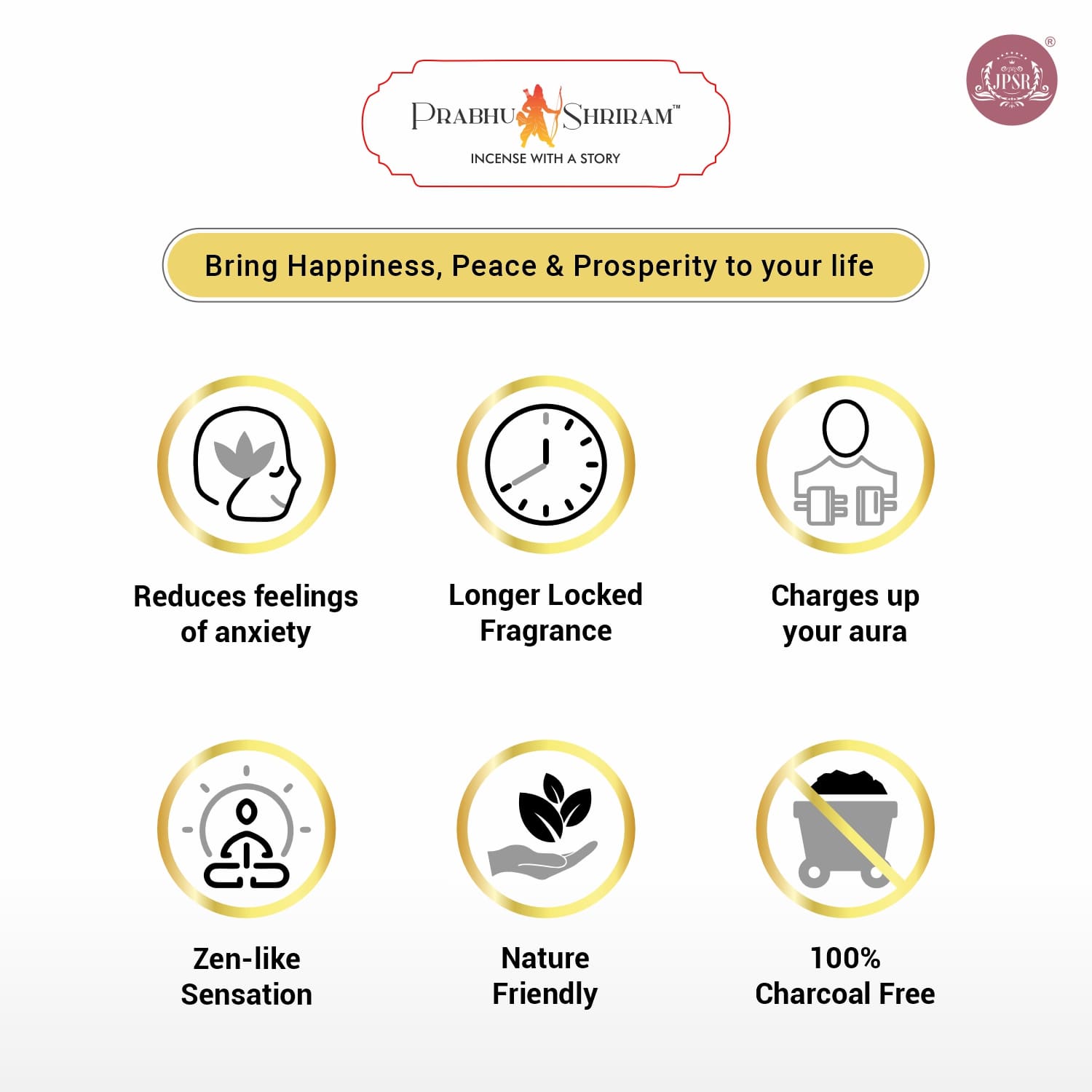• Made in India: Backed by Prabhu Shriram, a reputed Indian Incense stick and Incense cone brand, implying tradition and quality.