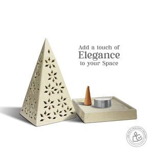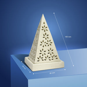 Ceramic Pyramid Incense Cone Diffuser is made from high-quality ceramic, featuring a smooth, polished surface and a beautifully finished glaze. The pyramid shape, long associated with strength, energy, and spiritual enlightenment, brings a sense of balance and positive energy to your environment. Pyramids have been revered across various cultures as powerful symbols of transformation and healing, and this design channels that energy, making it perfect for deepening your spiritual practice. The diffuser provides a stable and secure place for your incense cones, allowing their gentle smoke to rise and create a sacred atmosphere. With its smooth finish and flawless glaze, this piece makes a meaningful addition to any room, supporting a serene and spiritually uplifting environment. Designed with a modern outlook, it adds warmth to your space while enhancing its visual and aesthetic appeal.