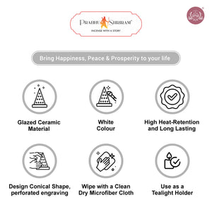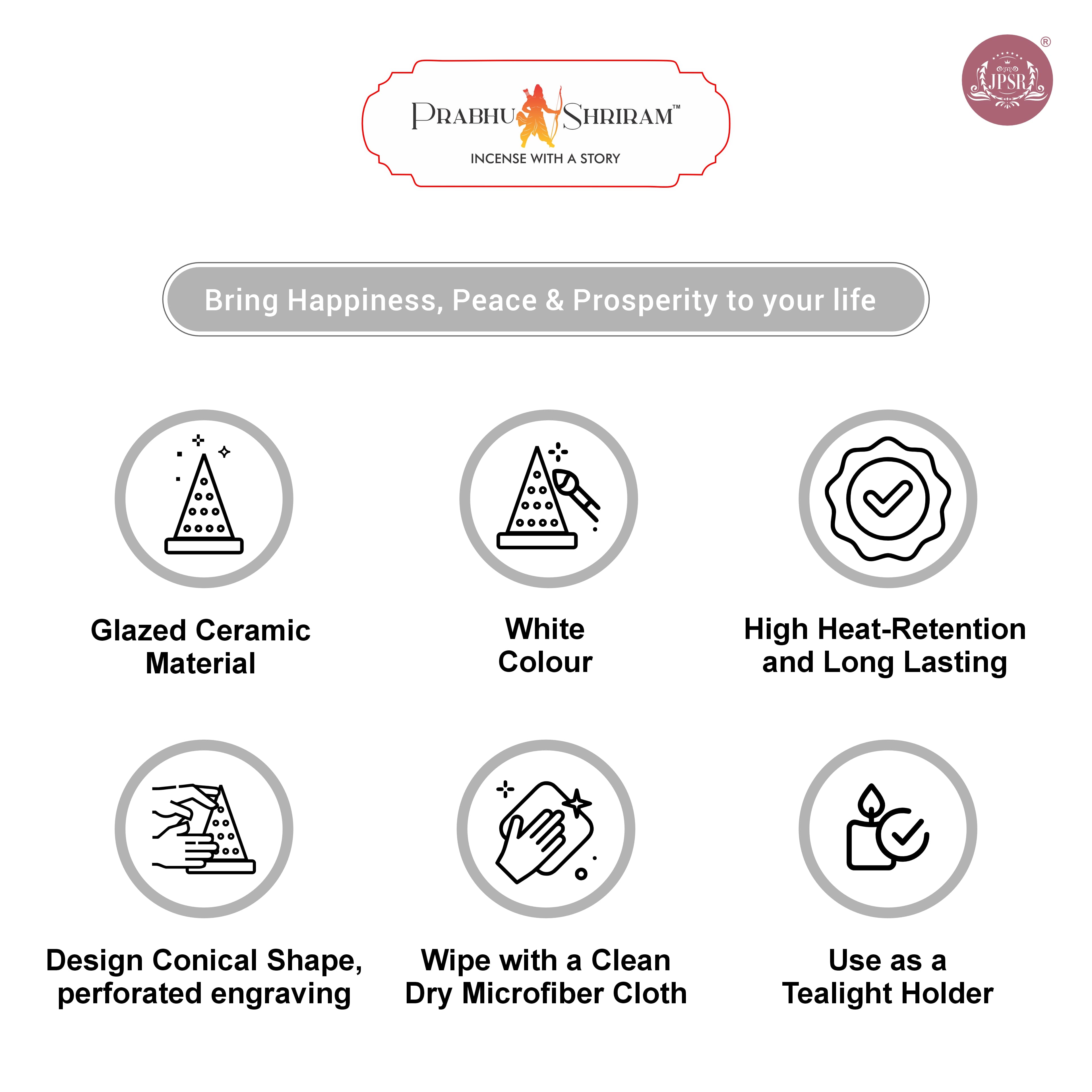 Ceramic Pyramid Incense Cone Diffuser White JPSR Prabhu Shriram