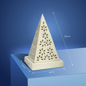 This Ceramic Pyramid Incense Cone Diffuser is made from high-quality ceramic, featuring a smooth, polished surface and a beautifully finished glaze. The pyramid shape, long associated with strength, energy, and spiritual enlightenment, brings a sense of balance and positive energy to your environment. Pyramids have been revered across various cultures as powerful symbols of transformation and healing, and this design channels that energy, making it perfect for deepening your spiritual practice. The diffuser provides a stable and secure place for your incense cones, allowing their gentle smoke to rise and create a sacred atmosphere. With its smooth finish and flawless glaze, this piece makes a meaningful addition to any room, supporting a serene and spiritually uplifting environment.