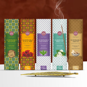 INCENSE STORY - Discover the splendour of the JPSR Kannauj Collection, an exquisite assortment of incense sticks that embodies the rich history of Kannauj, known as the "Perfume Capital" of India. Located in the heart of Uttar Pradesh, Kannauj has a millennium-old perfumery heritage, and its soil has a natural scent. Every incense stick from the JPSR Kannauj Collection creates a tapestry of rich scents that fill your home with timeless elegance. The creators of "Incense with a Story," Prabhu Shriram, take inspiration from this fragrant heritage to create an unmatched collection. Each stick is painstakingly made and infused with the same scents that have brought centuries of beauty to Kannauj. Available in 5 fascinating fragrances: