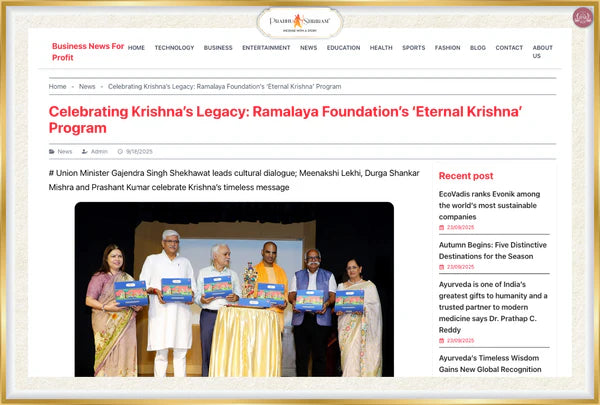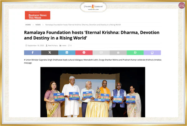 Ramalaya recently presented Eternal Krishna – A Soulful Samarpan of Shri Krishna Leela, an evening where devotion and culture came together in their purest form. The celebration came alive with flute, vocals, instruments, and dance, honoring Krishna’s eternal love. A Pattachitra painting showcase and a live fragrance experience added depth and tradition, while the presence of esteemed guests including Hon’ble Union Minister Shri Gajendra Singh Shekhawat (Chief Guest), Smt. Meenakshi Lekhi, MP (Guest of Honour), Shri Durga Shankar Mishra, IAS (Retd), HG Abhimanyu Pran Das, Shri N. Shriram and Smt. Sangeeta Shriram made the evening truly memorable.