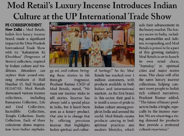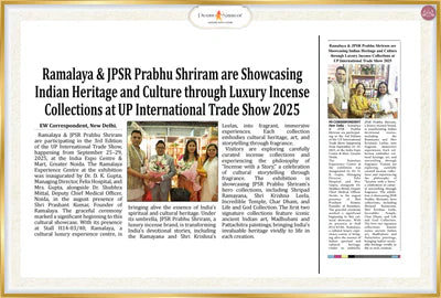 At Ramalaya, we proudly showcased the richness of India’s art, culture, and heritage at the UP International Trade Show. Visitors applauded our efforts to present centuries-old traditions in a form that is both luxurious and modern. Through our signature Shripad Ramayana Series and Shri Krishna Leela Collection, we created an immersive experience where fragrance, storytelling, and iconic Indian art came together to celebrate the timeless beauty of India.