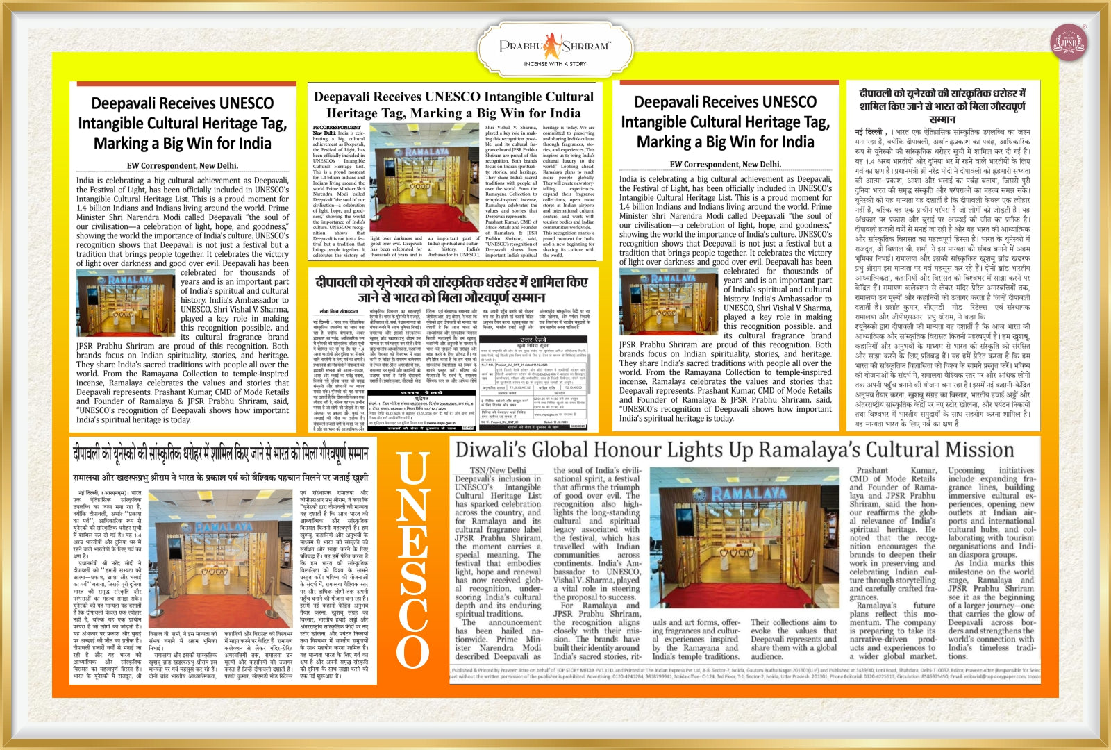 For Ramalaya and JPSR Prabhu Shriram, this honour strongly reflects their mission to preserve and share India’s sacred stories, rituals, and values through fragrance and cultural experiences. The recognition strengthens their commitment to carrying the light of Deepavali to audiences in India and across the world.