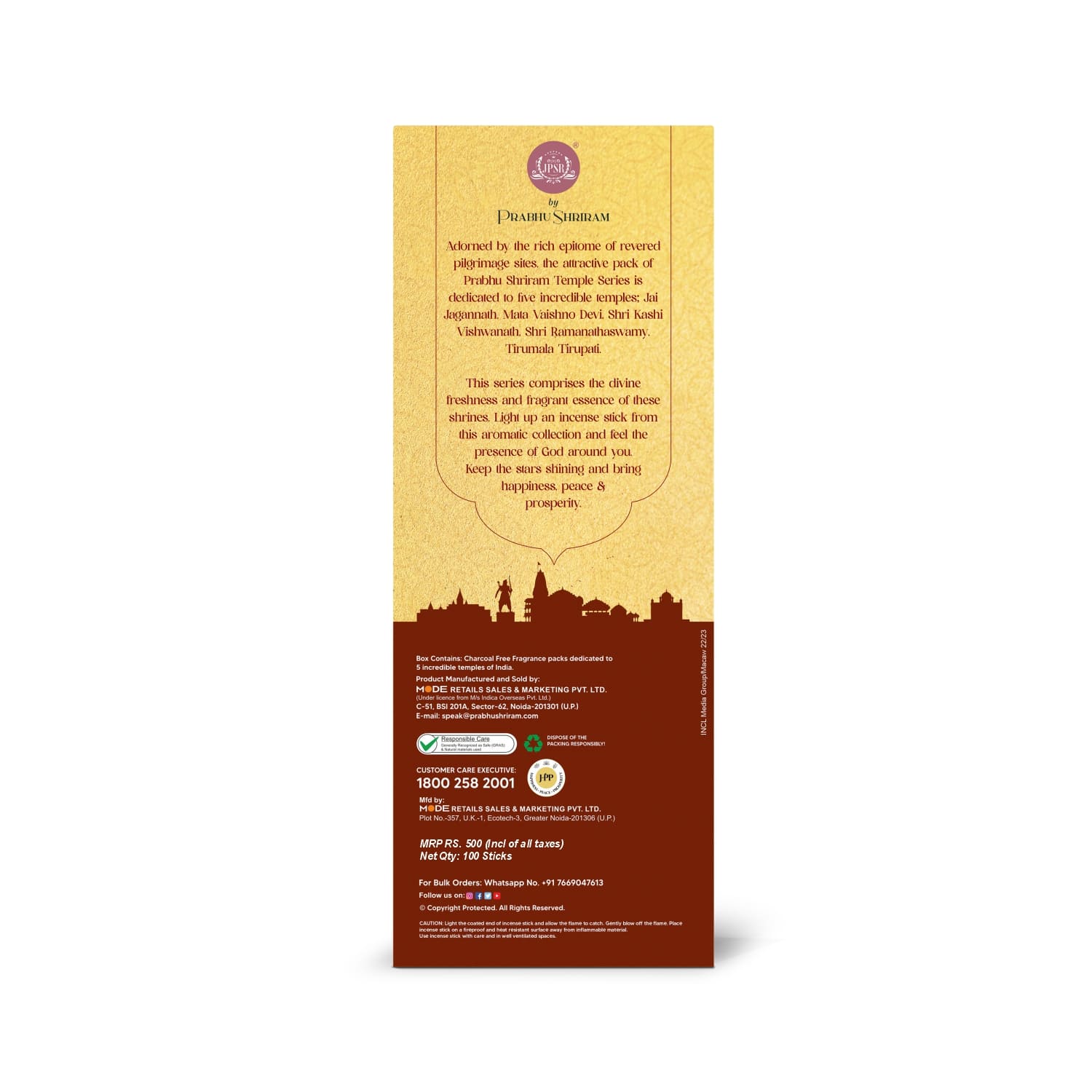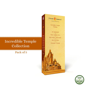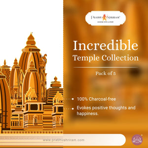 INCENSE STORY - Transport yourself to the sacred temples of India without leaving your home! The JPSR Prabhu Shriram Incredible Temple Collection Incense Sticks Gift Box offers a unique and spiritual experience through its divine aromas.