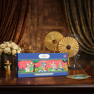 The Shri Krishna Leela Luxury Incense Collection brings these sacred milestones to life, transforming each story into a sensory journey. Each of the ten exquisite fragrances captures a defining chapter of Krishna’s life, celebrating his divinity, love, and playful spirit. Every incense is accompanied by a beautifully illustrated Pattachitra panel, an ancient art form from Odisha that spans over 1,000 years, connecting the past with the present.