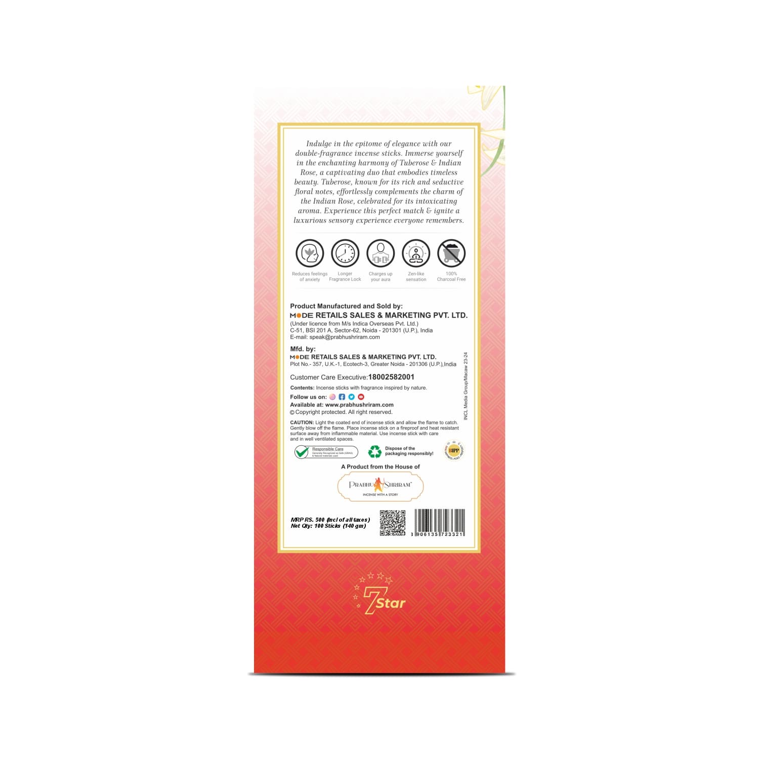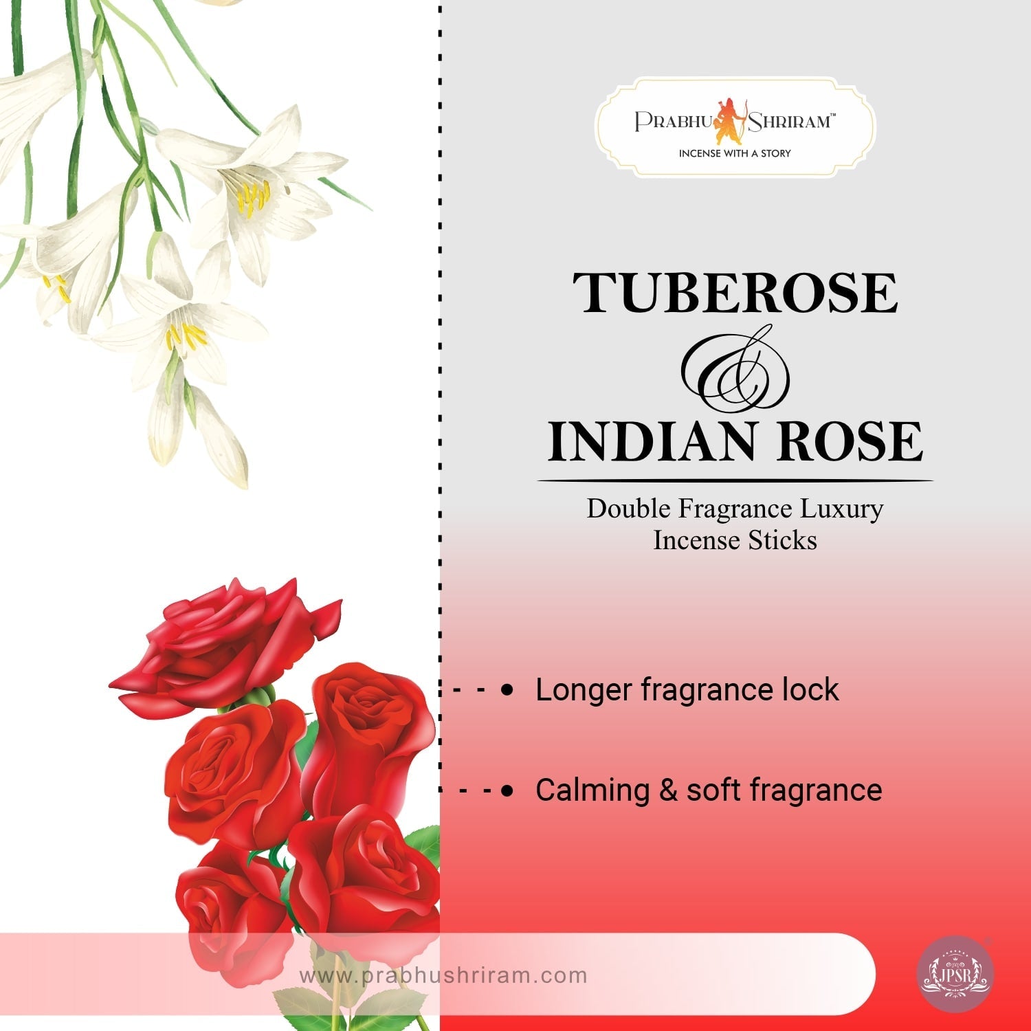 JPSR Flora Fusion Collection Tuberose & Indian Rose Luxury Double Fragrance Incense Sticks