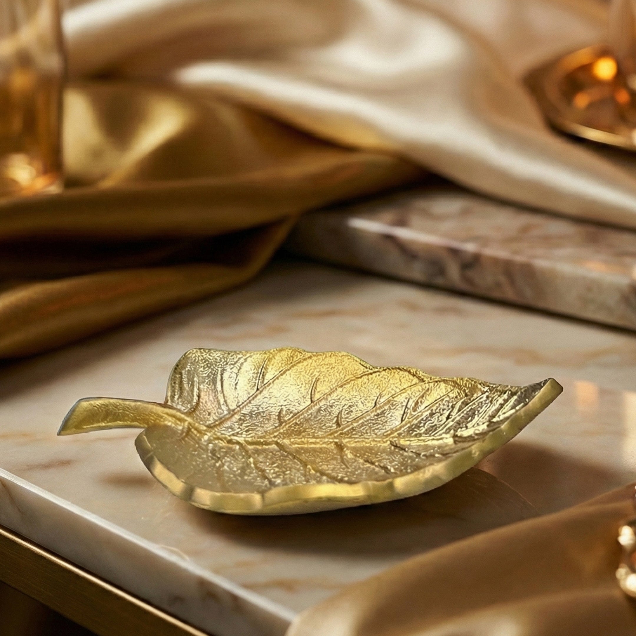Crafted in brass finish metal and sculpted in the graceful form of a natural leaf, this incense holder brings quiet elegance to your living space. Every curve reflects the organic beauty of the Peepal leaf, a classic emblem often associated with the Tree of Life in Indian tradition.